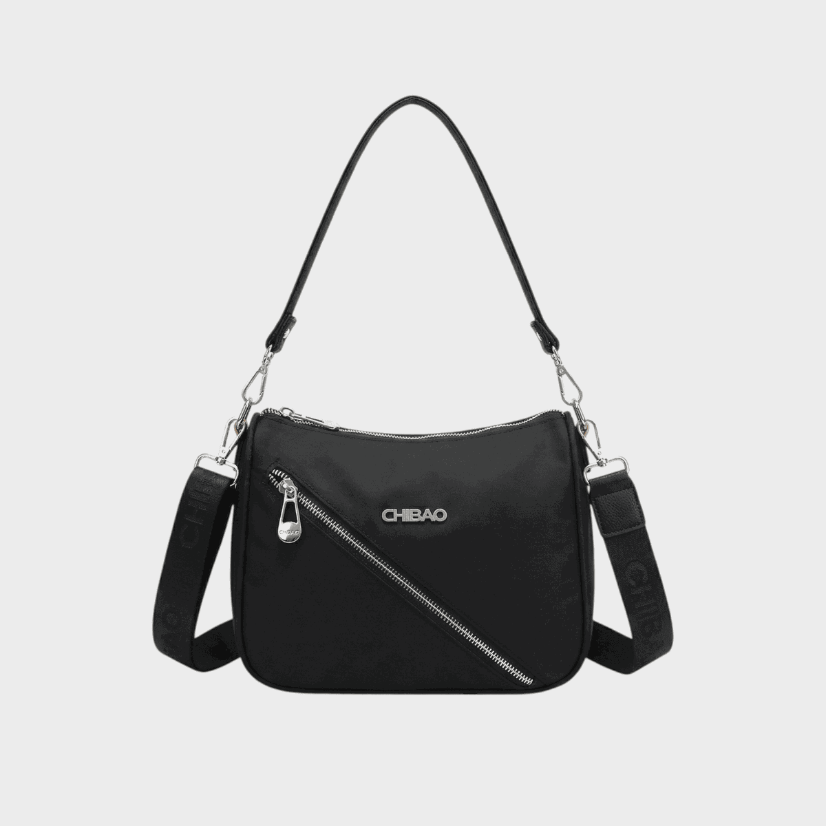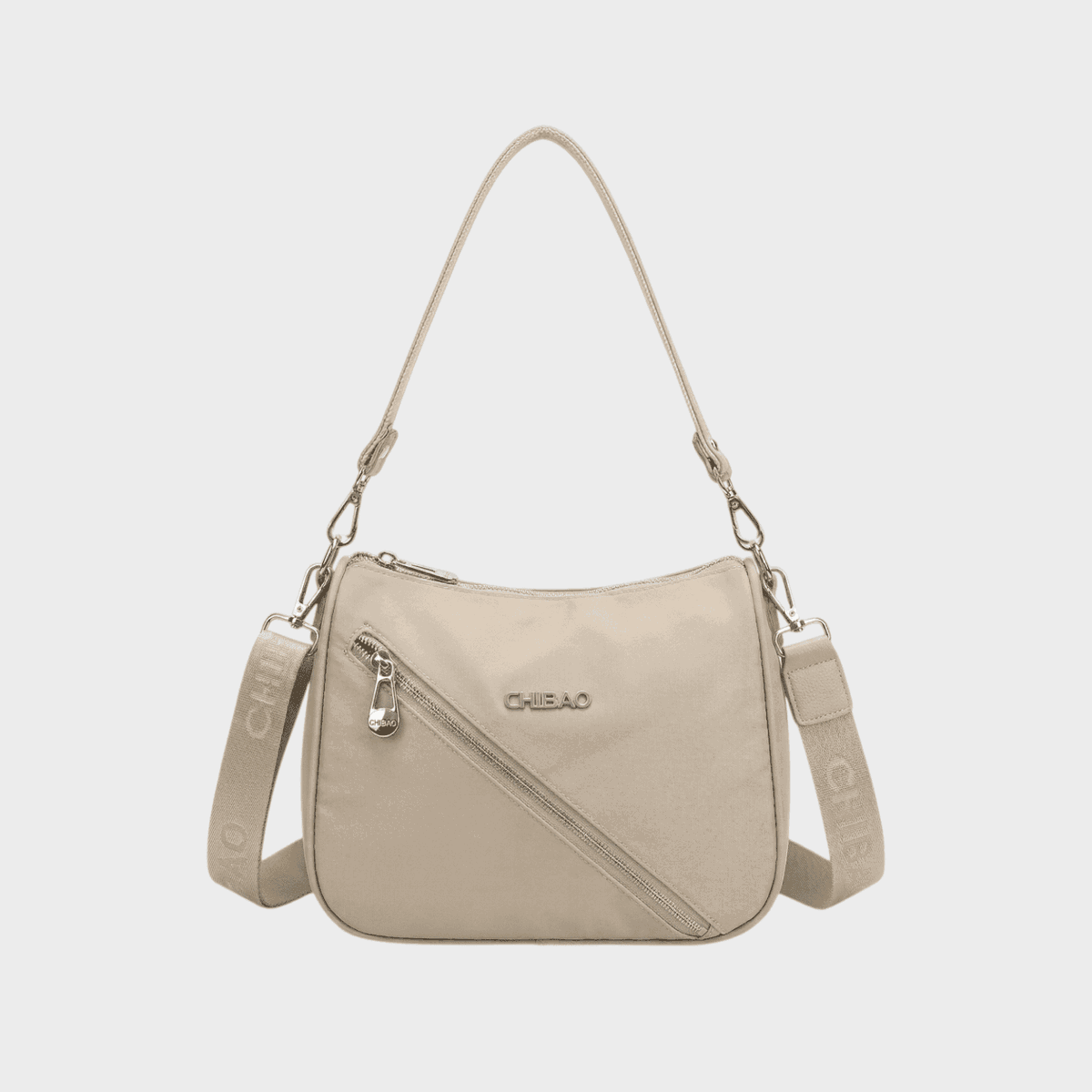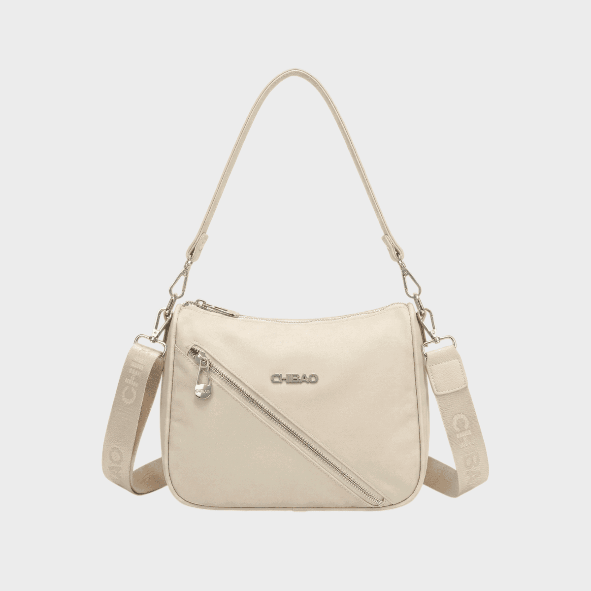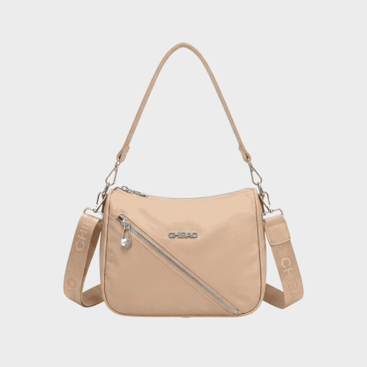 Descripción: Bolsillo principal con cierre interno y divisor. Cierre cruzado funcional en parte delantera, cierre en parte posterior. Correa corta y larga. Detalles de eco cuero.