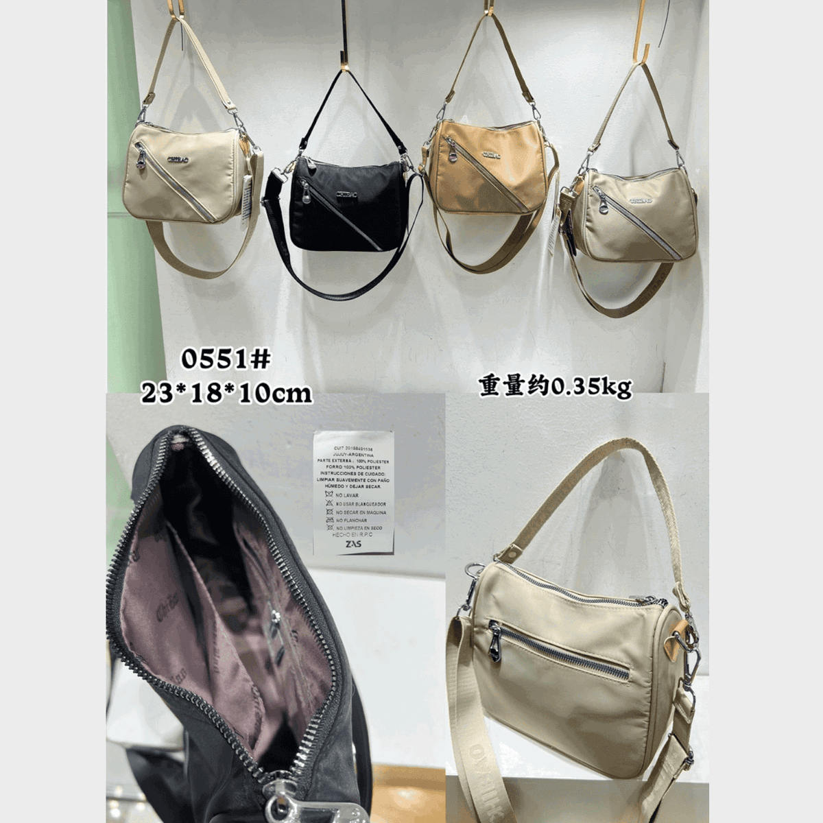 Material: Tela impermeable de alta resistencia, costuras y cierres reforzados.