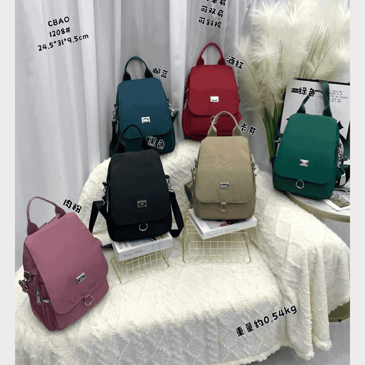Material: Tela impermeable de alta resistencia, costuras y cierres reforzados.