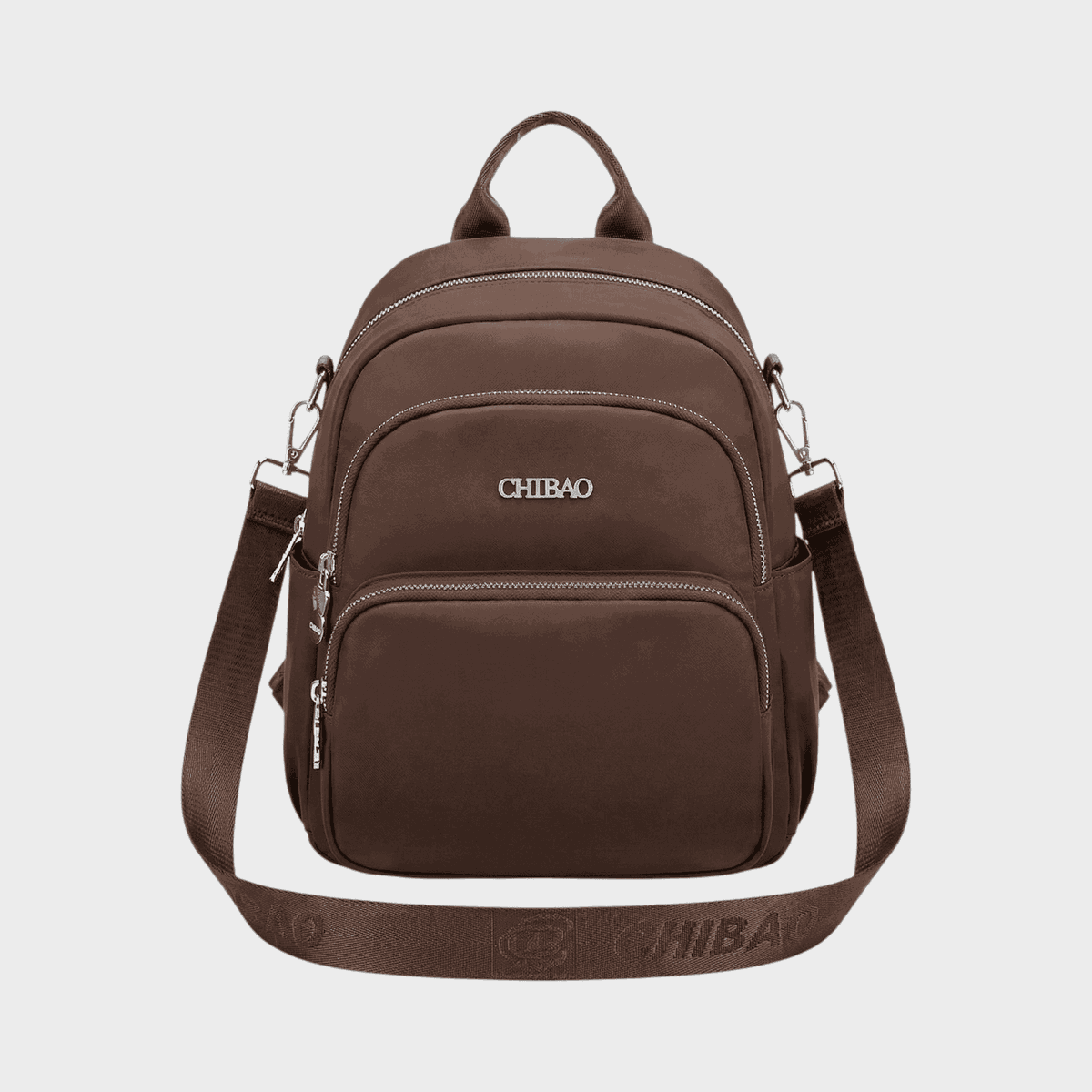 Exterior: Cierre principal, 2 cierres frontales, 1 cierre trasero, 2 bolsillos laterales