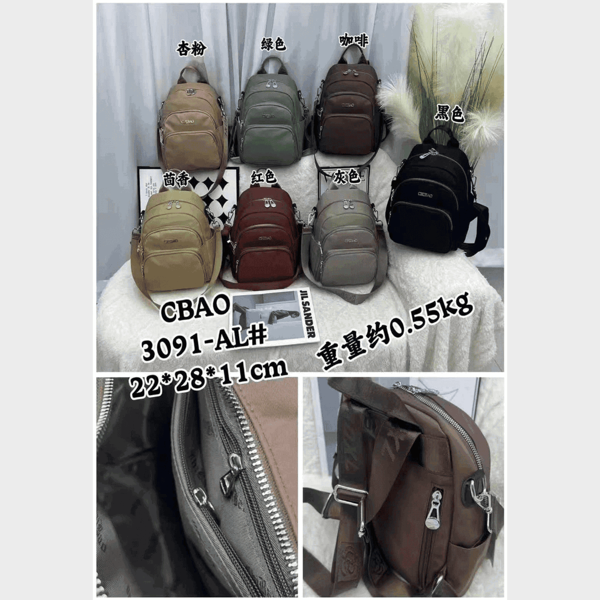 Material: Tela impermeable de alta resistencia, costuras y cierres reforzados.