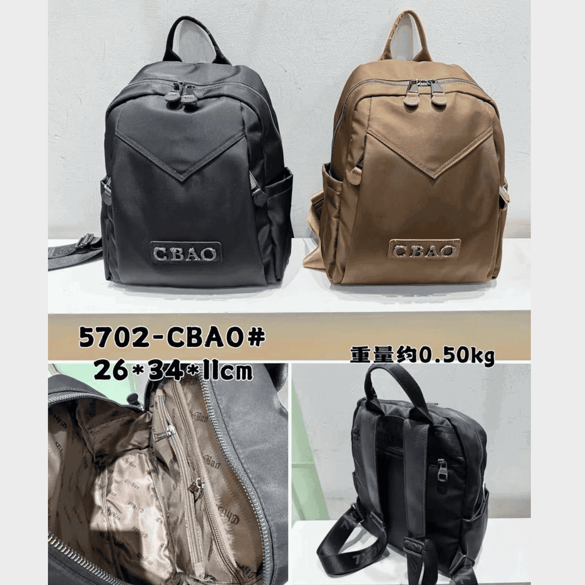 Descripción: Bolsillo principal con dos bolsillos internos con cierre y compartimiento. Presenta 3 cierres, 2 laterales y uno en parte posterior. Porta botellas en ambos lados. Detalles de eco cuero en manijas y tiras.