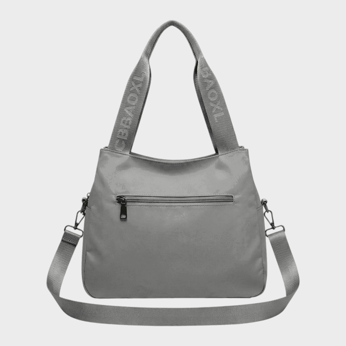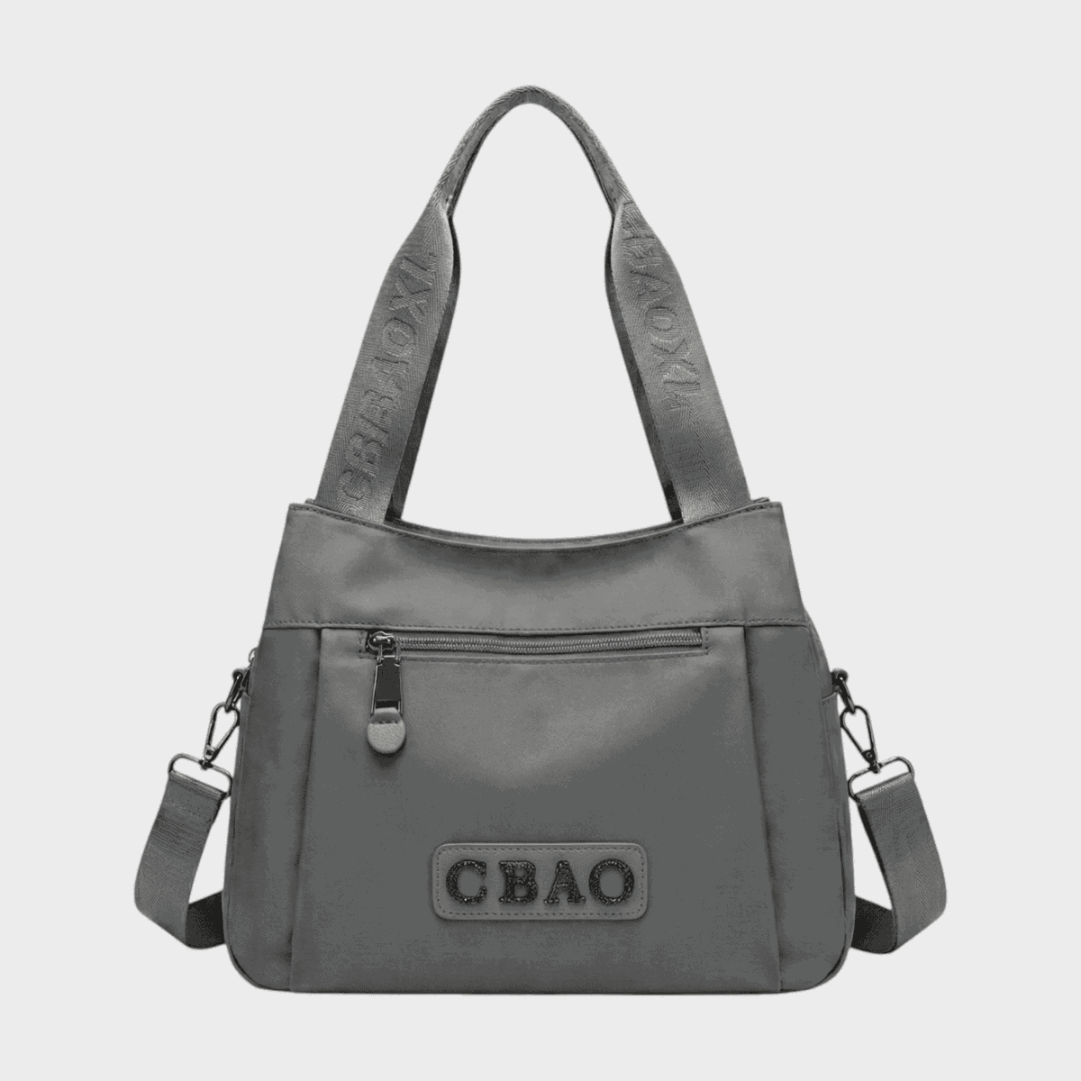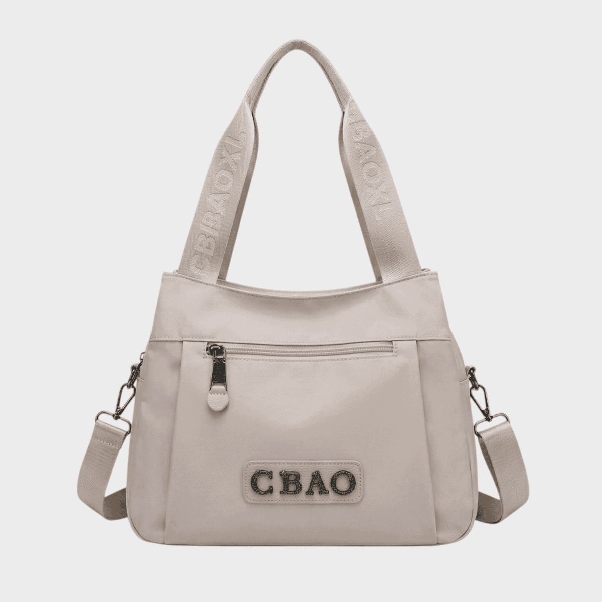Exterior: 3 cierres centrales, 1 cierre frontal, 1 cierre trasero, correa estampada de 1.30 metros