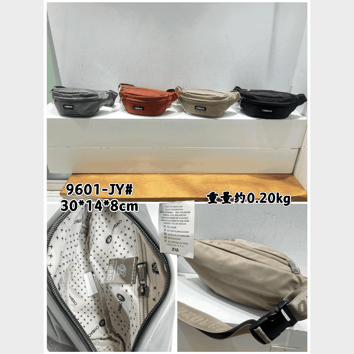 Material: Tela impermeable de alta resistencia, costuras y cierres reforzados.